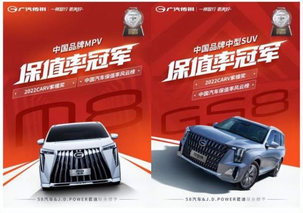 10月底,J.D. Power联合58汽车发布了《2022中国汽车保值率研究报告》,传祺M8和GS8分别获得细分市场保值率第一;此外,在《2022年度上半年中国汽车保值率报告》和《2021年中国汽车保值率研究报告》中,传祺M8和GS8也分别问鼎各自细分市场保值率冠军。