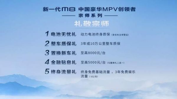 凭借饱含东方文化的独特设计、领先同级的智能科技,以及超越豪华的舒适驾乘体验,M8宗师从预订开启至今,上市前订单已超1.2万台。正如“M8宗师号”冲上云霄一般,M8宗师上市即巅峰!相信在未来,M8宗师将会持续创领中国豪华MPV市场,实现中国品牌在高端市场的稳稳扎根。