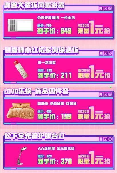 11月10日晚8点,京东11.11进入高潮期,京东新百货同步开启“大牌爆品百亿补贴限量1元抢”活动,带来多款高价值居家好物,覆盖床、沙发、四件套、保温杯、灯、浴霸等多品类,以实实在在的价格帮助消费者轻松焕新高品质美好生活。