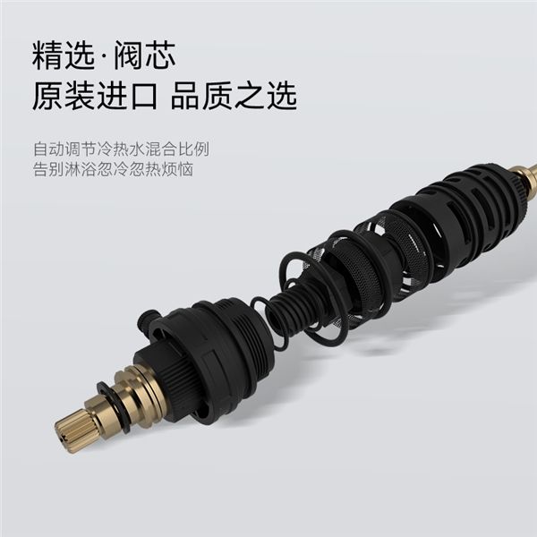 智能恒温功能,进口陶瓷恒温阀芯。极速响应,40°C安全恒温控温,无需考虑热水器水量以及不稳定问题,无需反复调试,设置好温度全程恒温。