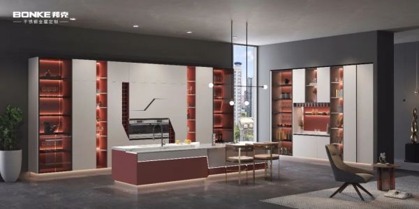 随着现代厨房与起居距离不断缩小,厨房不再是单一的使用场所,也可以是一个多功能的小型社交空间。邦克不锈钢全屋定制对厨房有特别的看法,不是在简单的功能组合与叠加,而是融入更长久实用的细节设计。