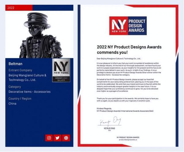 近日,2022年美国纽约产品设计奖(NY Product Design Awards)官方公布了年度获奖者名单,在今年的比赛中,望见玺品牌创始人、设计总监白帆凭借卓越的设计理念脱颖而出,其参赛作品Beltman虏获了评审团的心,荣获产品设计装饰类、配饰类银奖。
