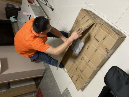 早晨7:55分,张师傅提前5分钟到达客户的家里,全程佩戴口罩,手部消毒,穿戴鞋套,介绍自己并提醒客户为防范疫情,建议戴上口罩,完成这一系列工作之后,张师傅开始和客户核对订单及服务内容。