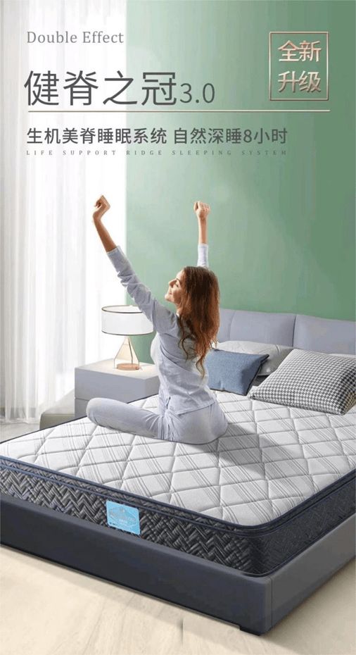 除此以外,【穗宝.健脊之冠3.0】还填充了一些舒适的海绵、热烘棉边框,压力缓冲网等,以此来组成床垫的内部系统,增强床垫的弹性和耐力。