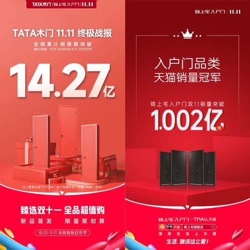 11 月 12 日零点 ,TATA 木门在双 11 活动期间全网累计成交额定格 14.27 亿 , 同比增长显著。旗下子品牌“锦上宅”入户门也有亮眼表现 ,天猫累计成交额超1.002亿 。在参加双 11 的第 11 年 ,TATA 木门再次奠定了其品牌的实力与影响力,向行业和市场交出了一份完美答卷, 也展现出更大的进取决心。