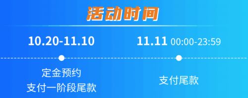 支付好定金后别忘了上个闹钟,11月11日0点准时抢付尾款,这样获得的福利会更丰厚哦,集齐多重福利的幸运儿有可能就是你!