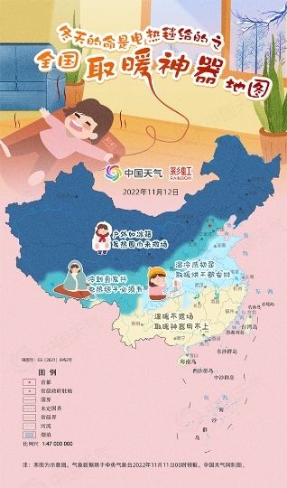中国天气网讯 眼下一股全能型冷空气正在影响我国,北方正在经历今冬以来首场大范围雨雪。预计明后两天(11月12日至13日),我国多地气温将创今年下半年以来新低,而前期异常暖热的南方也将迎来换季式降温,从初夏的感觉直接穿越回深秋。寒冷将至,中国天气网、彩虹集团联合推出全国取暖神器地图,快来看看你家需要哪些神器登场,还有最全取暖神器选购指南及注意事项,助你过个安全又温暖的冬天。