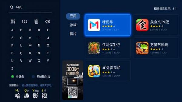 打开当贝市场搜索“MSJ”,找到咪视界这款软件。