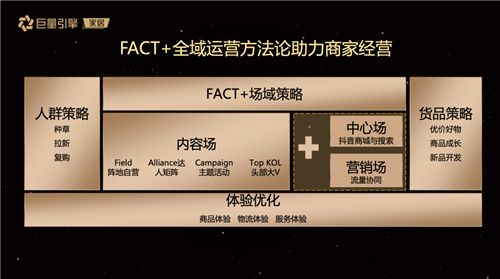 面对以线上转化成交为主的家具家纺等品类,巨量引擎聚焦线上转化场景,以FACT+全域运营方法论为支撑,从人群优化、电商销售体系打造、节点营销等角度为家居企业提供助力,提升精准受众圈定、GMV转化、关键流量聚拢等整体效果。