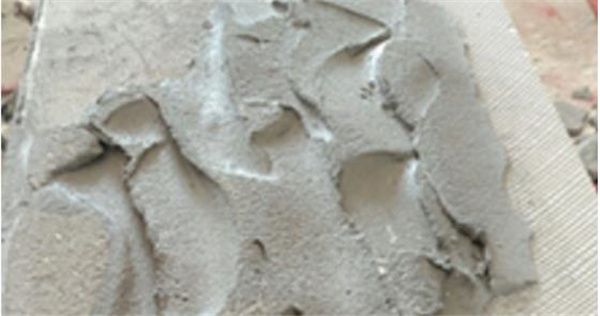 从小王提供的线索看来,师傅并没有使用正确方法进行施工。师傅采用传统工艺的厚贴法,且未进行揉压,满浆率低。