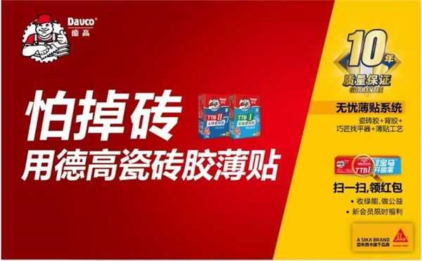 所以记住,使用德高瓷砖胶不能厚贴,同时需要双面上浆,充分揉压。