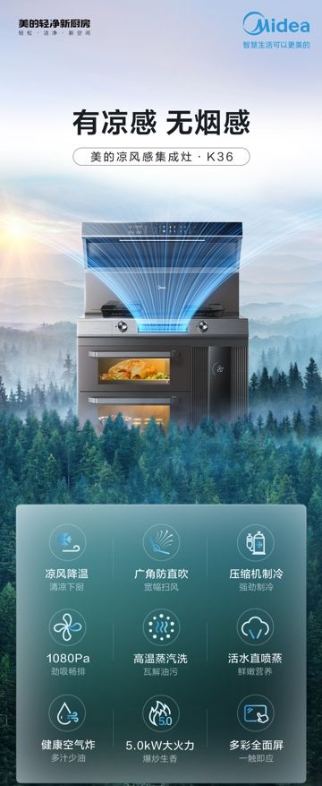作为厨热领域的引领者,美的始终以用户需求为核心,通过不断技术迭代创新,为用户带来真正解决下厨问题的厨电产品。此次,美的推出的凉风感集成灶K36以强劲的吸排能力,雄厚的科技实力,消除了人们对油烟的顾虑,重塑消费者对厨房烹饪生活的想象,让集成灶这一品类加速走进中国家庭,为用户带来高品质的厨居生活新体验。