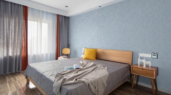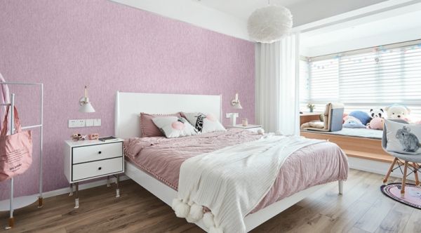 首先是房间光线。墙布应该与房间的光线匹配。光线的强弱直接影响到墙布整体色调的选择。一般来说,朝南或是朝东的房间光照充足,甚至有一点明晃晃的感觉,墙布宜选用淡雅的浅蓝、浅绿等冷色调,如果光线非常好,墙布的颜色可以适当加深一点以综合光线的强度,以免墙布在强光的映射下泛白。此外,不宜大面积使用带反光点或是反光花纹的墙布,如果用的太多,会像在墙面装了很多小镜片,让人觉得晃。朝北或是光照不足的房间,墙布应以暖色为主,如奶黄、浅橙、浅咖啡等色,或者选择色调比较明快的墙布,以免过分使用深色系墙布,强调厚重,使人产生压抑的感觉。科翔墙布针对不同光线的房间设计了不同色调的墙布,不论是朝东朝西还是朝南朝北,都能选到一款色调合适的墙布。