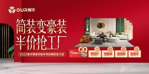 岁月匆匆弹指一挥间,我们即将辞旧迎新。在这年终岁尾,奥华2022年度收官大促“简装变豪装 半价抢工厂”活动将为您解锁顶墙整家定制超值钜惠福利。