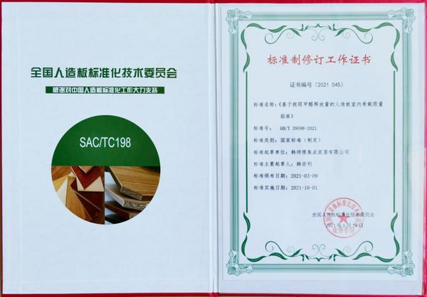 2021年,《人造板及其制品甲醛释放量分级》、《基于极限甲醛量的人造板室内承载限量指南》两项国家标准环保标准正式实施,针对人造板甲醛释放量分级进行了进一步深化,助力环保板材选购有据可依。