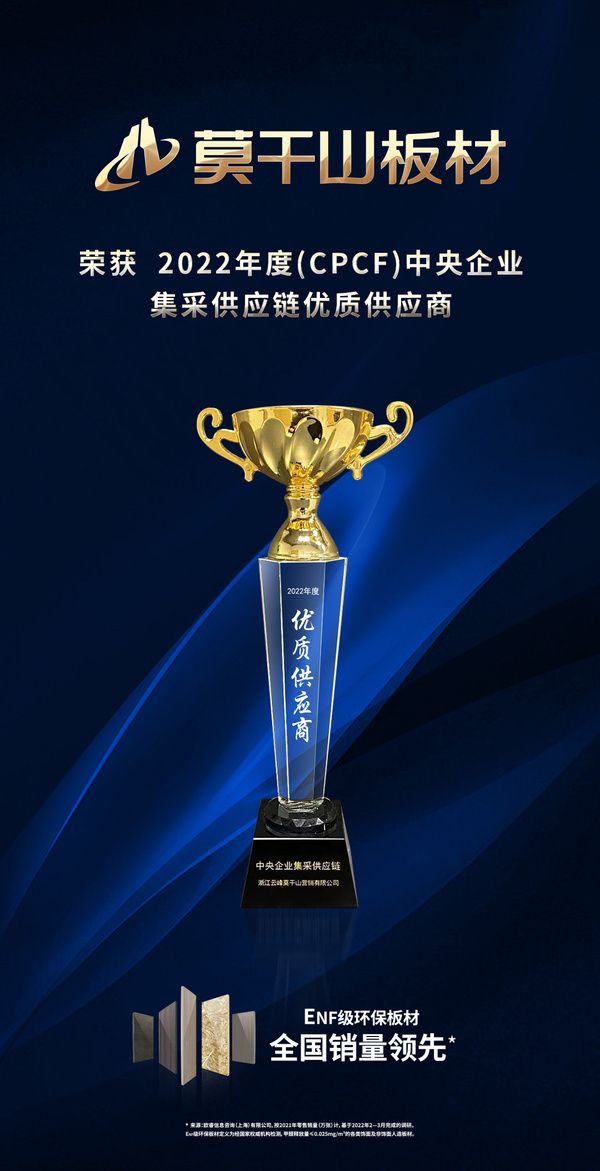 莫干山板材荣获“2022年度中央集采供应链优质供应商”奖项