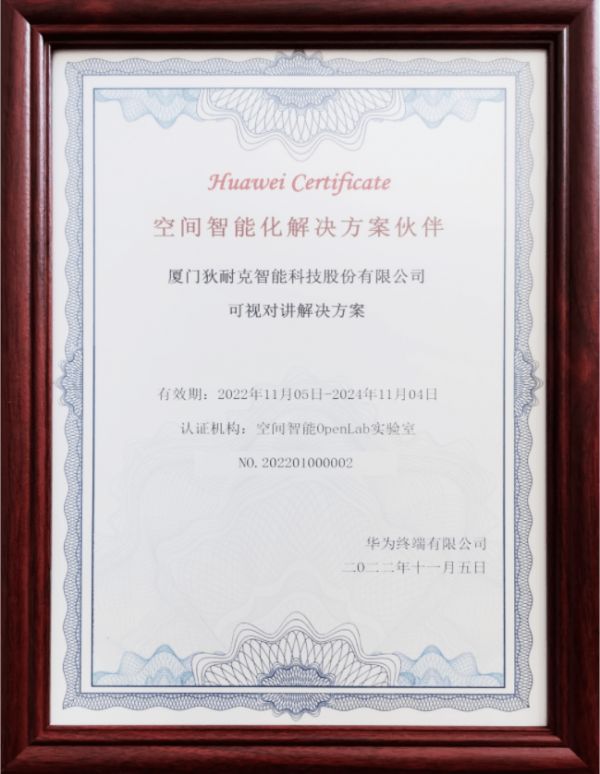 会议期间,狄耐克获得华为授予的“空间智能化解决方案伙伴”认证证书,成为首批全屋智能面向可视对讲行业的解决方案合作伙伴,意味着狄耐克卓越的解决方案设计、开发和交付能力及有口皆碑的品牌实力受到充分认可。