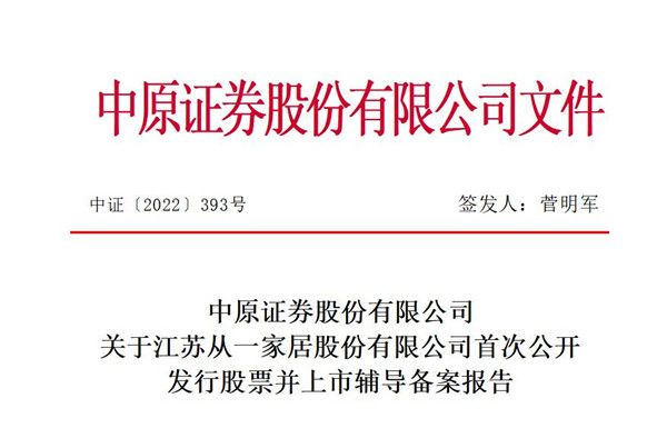 门窗快讯|江苏从一家居启动A股上市辅导,注册资本为6646.35万元
