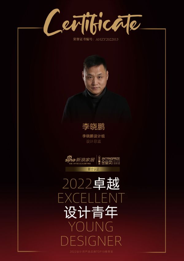 近年来,中国设计已经不是之前的盲从者,一批又一批优秀的青年设计师,用现代设计语言表达着中国当代新人居,诠释着中国人现有的生活审美和品位。中国设计的青年力量,已经完成了自我突破的变革期。转变为引领中国生活方式和设计潮流的先锋倡导者——“2022卓越设计青年”。由新浪家居和金堂奖全国联盟发起,是设计业界最具传播价值的年度先锋荣誉,其成员由全国设计领域青年精英设计师组成,新浪家居与金堂奖联名认证。本次活动致力于在全国范围内发掘和表彰室内设计领域表现卓越的杰出青年设计师,为推动中国设计中坚力量,中国设计新影响力而努力。