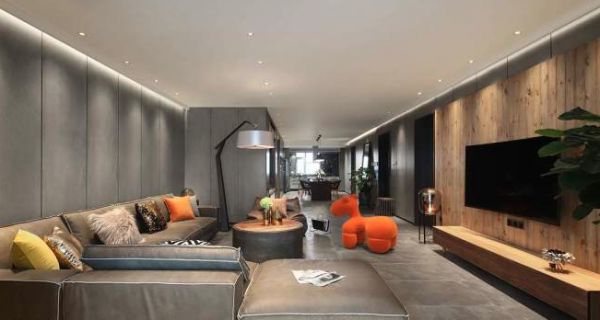 【李晓鹏】:“高级灰”似乎永远是设计师的最爱,《简单生活》初期设计思路有幸得到业主的认可。现代简约和北欧风格的设计手法,是本案设计的主导思路,通过简单的设计手法和低碳环保的材料来表现现代生活的低奢和优雅。墙面选用了进口的混泥土板,一部分北欧风格的复合地板也被设计在房间的墙上,看似简单的手法,却能打造出高贵雅致。高级灰优雅内敛,可以和任何材料的色彩搭配,这也给后期的软装的选择带来了无限的可能。