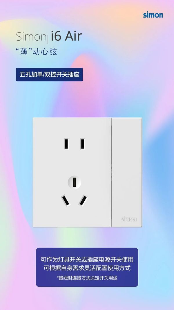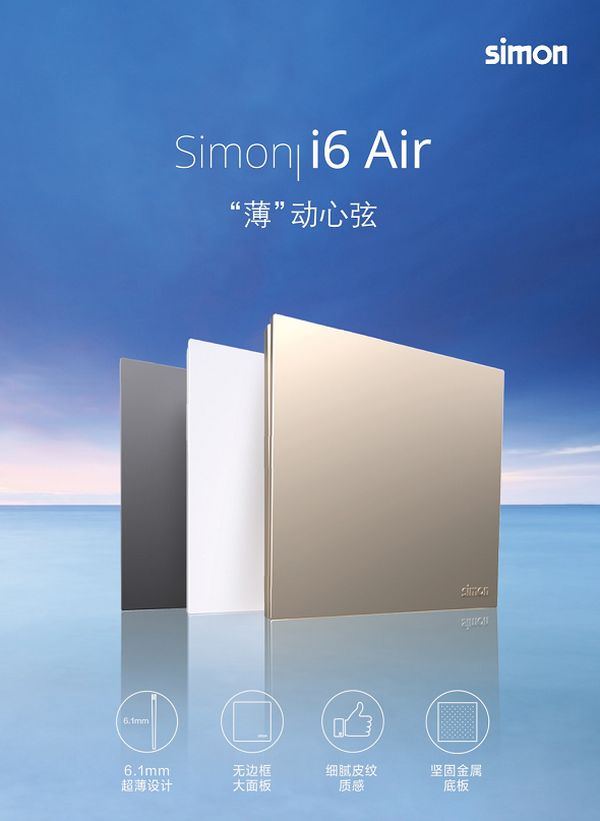 究其深层次的原因,在于当下人们对极简审美和极简生活的追求,减去冗余的部分,保留一个简单轻盈的生活环境。一款产品的设计和人们的深层需求契合,必定带给使用者更多灵感与惊喜。Simon i6 Air系列开关插座,以6.1mm的轻薄纤细之姿,为极简生活提供一些参考方向。