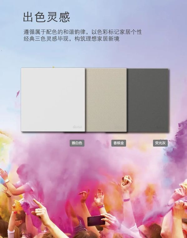 Simon i6 Air开关插座,使用香槟金、雅白色和荧光灰三种经典配色,搭配无边框的面板设计,将留白发挥到极致,深看几眼,便会沉浸在这种仿若无限延展的美感中。开关表面的特殊喷砂工艺,给开关覆上一层哑光质感,触感十分细腻,有效减少指纹,让每一次接触,都成为享受。