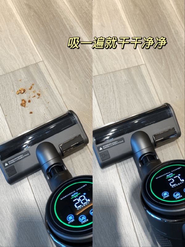 先说说大家最关注的吸力吧,悦夫人V70这款吸尘器足足有28000PA的吸力,像地上大颗粒垃圾、碎纸片、瓜子皮等等都可以轻松吸入。而且整个吸尘过程,都能感觉到是它在牵引着我往前走,不需要用蛮力去操作。