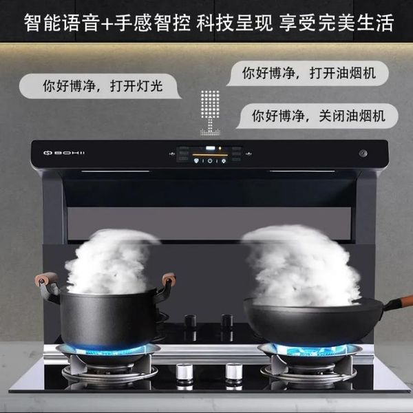 博净嵌入式集成灶,无趣的厨房也能瞬间变得有趣起来!内置语音智控+体感操作交互系统,可以一边做饭一边语音互动。它还可以控制烟机、开关照明灯等等,接收到指令后它就会自动开启程序,好玩又轻松。