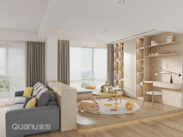 不管是美化横梁还是承重柱都要确保居室风格的统一,这样才能弱化视觉效果让全屋更加和谐美观哦~欢迎对装修感兴趣的朋友来全友全屋定制门店咨询了解~