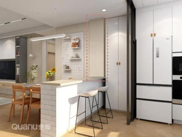 隐藏承重柱是当下最为主流的设计,定制柜体的时候将承重柱直接包进柜子里,既美观又实用,空间整体性更强,但这种方法只适用于贴墙、厚度不厚的承重柱。