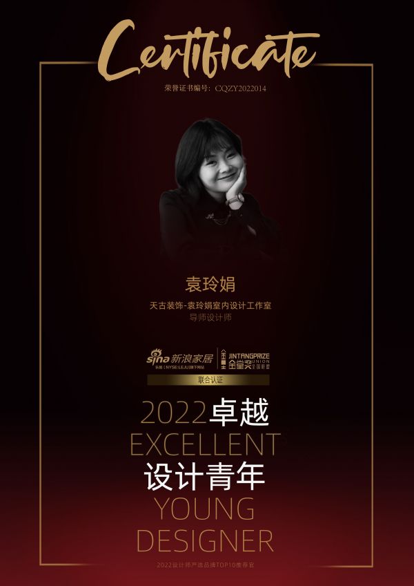 近年来,中国设计已经不是之前的盲从者,一批又一批优秀的青年设计师,用现代设计语言表达着中国当代新人居,诠释着中国人现有的生活审美和品位。中国设计的青年力量,已经完成了自我突破的变革期。转变为引领中国生活方式和设计潮流的先锋倡导者——“2022卓越设计青年”。由新浪家居和金堂奖全国联盟发起,是设计业界最具传播价值的年度先锋荣誉,其成员由全国设计领域青年精英设计师组成,新浪家居与金堂奖联名认证。本次活动致力于在全国范围内发掘和表彰室内设计领域表现卓越的杰出青年设计师,为推动中国设计中坚力量,中国设计新影响力而努力。