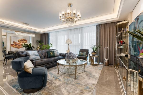 在美克美家的设计中,没有追求过多的色彩,而是通过深浅对比来凸显高级感,通过装饰植物和地毯中和空间色彩,带来安逸、宜居的居家享受。