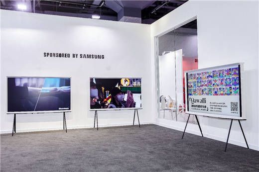 2022年新款The Frame画壁电视在展示数字艺术品的同时融入潮流文化环境,让参观者身临其境感受纯粹的艺术氛围。其如同画框般的外观设计搭配展区大胆前卫的潮流风格,营造出未来科技感十足的数字空间。可旋转的纤薄壁挂架让The Frame画壁电视仿佛嵌入潮流背景墙,并能配合现场极具科技感的展厅氛围及艺术品独特的潮流个性,选择最恰当的呈现角度,为空间极具增添动态质感的同时,展现自由多元的潮流态度。拥有5种哑光背景和16种颜色选择的哑光遮片更是为艺术品的呈现锦上添花,使其在屏幕中呼之欲出。此外,The Frame画壁电视内置的亮度传感器还可随时检测展区光线,针对不同照明条件自由调节屏幕亮度和色调,使艺术展品始终呈现真实色彩,高度还原虚拟艺术品的细腻质感,为现场观众打造突破传统的非凡艺术体验。