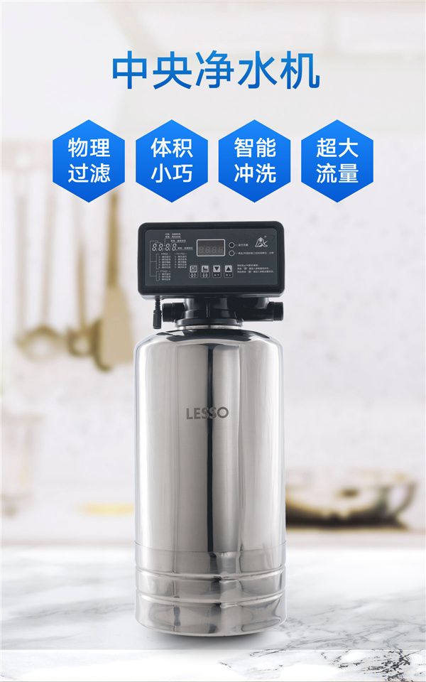 好管家:中央净水机是一种大型的家用水处理设备,是通过石英砂、活性炭等滤料来吸附水中的余氯、重金属、异色异味等有害物质的净水设备。