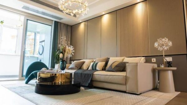 我家是一个124㎡的户型,我之前预想的效果便是轻奢优雅中带着独属于家庭的温馨。所以设计师把客厅的沙发以及墙面设计为了相近的暖色调,高低不一的不规则茶几也是极具个性。不仅如此,他们还为我放置了休闲椅,设计了电视背景墙及沙发背景墙,窗帘灯具也全部配齐,生活感十足。