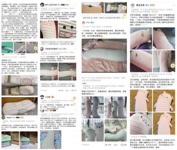 在本次双十一狂欢季中购买了乐瓜品牌的消费者照片中,不仅有新的消费者也有多次回购的消费者,他们纷纷给出了乐瓜产品的制作工艺注重细节、产品质量好、抱着可以改善睡眠、提供了安全感等等使用感受。