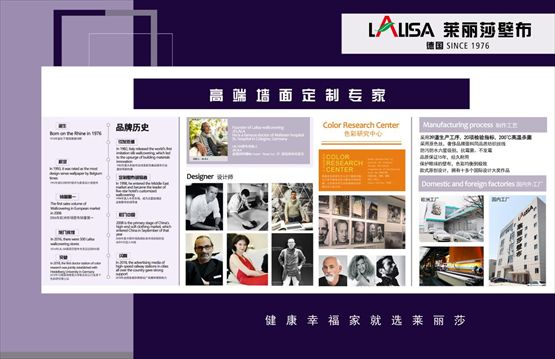 莱丽莎在注入强大的研发实力和成熟的品牌运作经验,不断保持在产品研发上的优势。目前,莱丽莎高端壁布同步世界潮流,整合专业设计力量,不断创新推出欧式、美式、现代、中式、儿童五大风格,满足消费者的高品质产品服务要求,创造幸福家居时尚新文化。