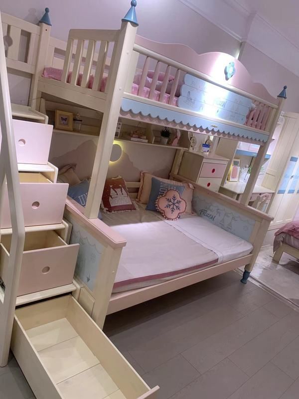 因此,她推荐了一款松堡王国“以冰雪城堡为主题设计灵感”设计的、适合两个女孩子的上下床。这款产品兼具安全与环保,也充满了小女生气息的梦幻。