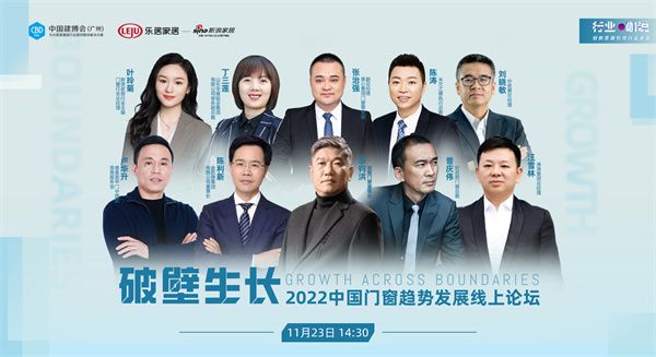 新浪门窗频道独家报道 11月23日,中国建博会(广州)联合新浪家居特别举办的“破壁生长——2022中国门窗趋势发展线上论坛”圆满成功。本次论坛跨界联动门企和窗企,特邀中国门窗行业代表企业家,在线进行深度对话,聚力行业发展风向,共探产业新趋势,寻找确定的增长。