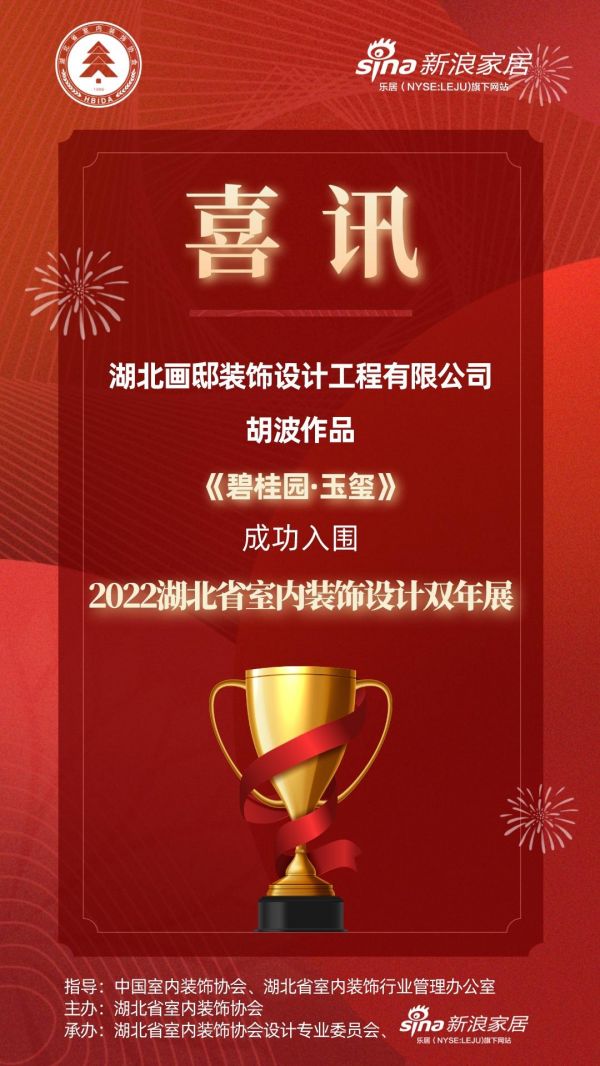 湖北画邸装饰设计工程有限公司设计师胡波原创作品《碧桂园·玉玺》,成功入围2022湖北省室内装饰设计双年展,以独特的设计风格,和优秀的设计能力,展示设计理念和创意。