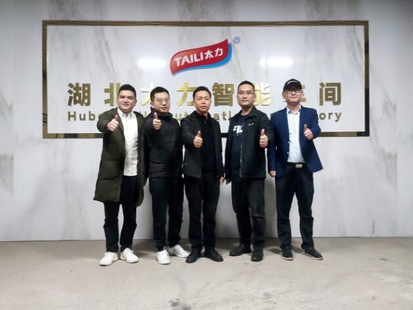 (图:苏宁易购快消行业总裁兼家乐福中国副总裁张奎及团队参观湖北太力智能车间)