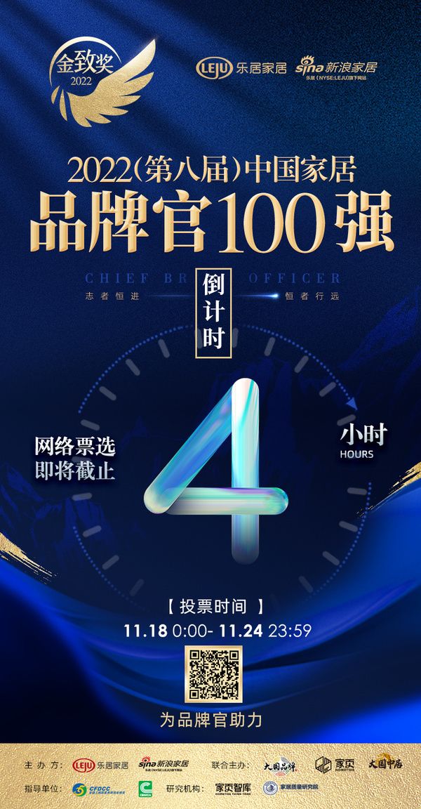 倒计时4小时 |「2022(第八届)中国家居百强品牌官」网络票选通道即将关闭!