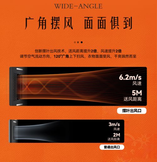 传统晾晒衣服离不开阳光、温度,一方面可以有效的杀菌,另一方面可以快速的晒干。但是这款好太太GW-160智能晾衣机因为开创性的研发出了摆叶出风技术,送风和风速均提升于市场上常见的晾衣机2倍之多,随意调节空气吹动方向,角度扩至120°广角,使得晾晒衣物双面均可受到风吹,快速干爽,无惧天气影响。