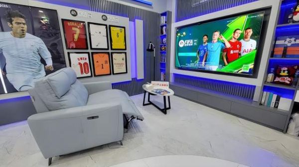 在FIFA主题的腾讯电竞游戏客厅,芝华仕绅士系列10356梦幻蓝空让喜爱足球电竞的发烧友打开功能躺位,拿起游戏手柄,便可在舒适的角落里快意遨游足球世界。