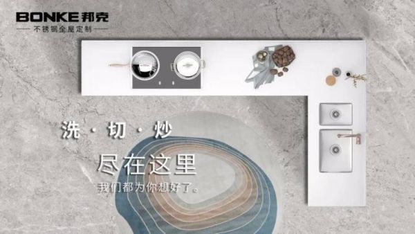 从较早囊括不锈钢水槽、水龙头、淋浴花洒、厨卫挂件的产品线,到如今包含整体厨房、浴室柜、衣柜、酒柜、鞋柜等在内的不锈钢全屋定制产业链打造,邦克创造性地用不锈钢材质并融合自身所研发的新设计及制造工艺,使产品具有防水防腐、防虫防菌、耐用耐洗、耐火耐高温的优良特性,实现了远胜木质家居的新生活美学及极致体验。
