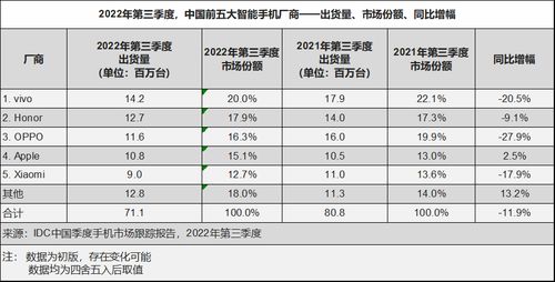根据IDC提供的数据显示,2022三季度中国智能手机市场出货量显示,vivo占有20%市场份额,随后是荣耀和oppo,前者占据市场份额17.9%,后者占据16.3%。而魅族市场份额已经小到被归到“其他”系列。