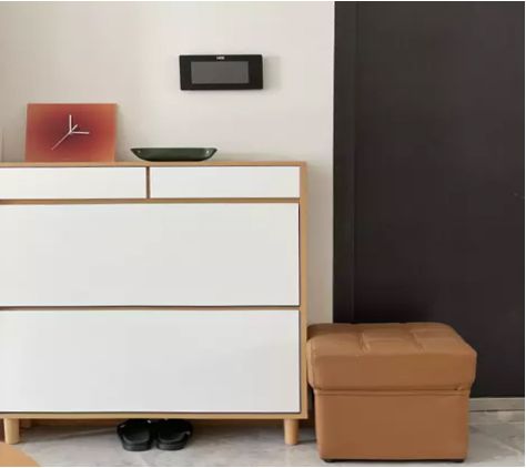 入户的位置采用样子生活拼图鞋柜,双门四层的设计,可以满足一家人日常储鞋的需求,客厅空间大面积原木素材的运用,视觉既温暖又简约,茶几和电视柜都是沿用这种圆角造型的设计,在有孩子的家庭里更加发挥出了它的安全性和储物性,餐厅旁边为孩子提供充裕活动空间。