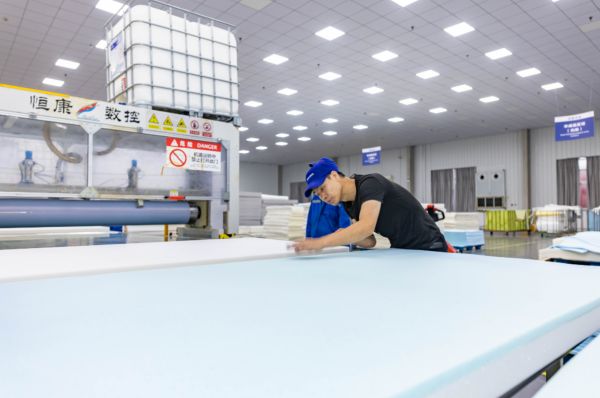 图为梦百合中国生产基地(江苏如皋)