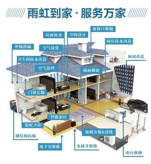 雨虹到家服务是上市公司500强东方雨虹旗下子公司。东方雨虹修缮,相当于建筑修缮行业的“协和医院”。雨虹到家服务承接东方雨虹的工匠精神和责任使命,把控每一个环节,为客户带来更好的暖通修缮服务。