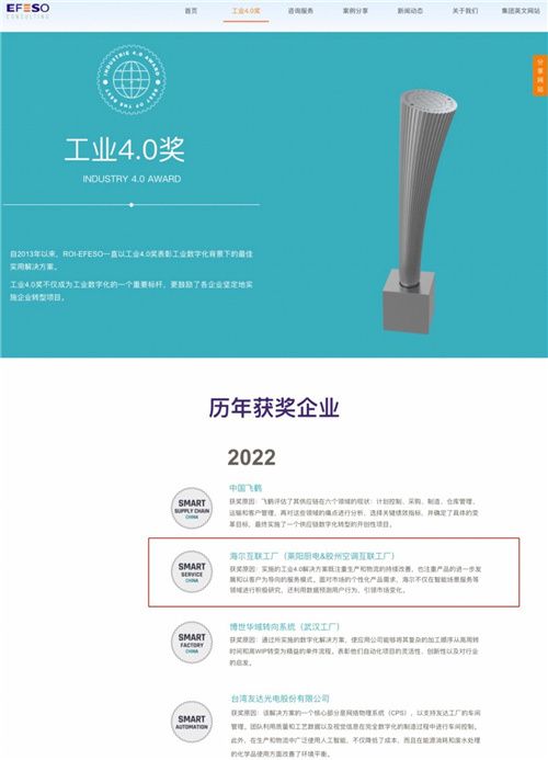 据了解,“工业4.0奖”始于2013年,由ROI-EFESO(瑞欧盈-埃非索)组织评选,作为一项非营利评选奖项,主要表彰在智能工厂、智能供应链、智能服务、智能可持续等方面推进杰出的数字化转型企业,现已成为德语国家中最负盛名的行业奖项之一。